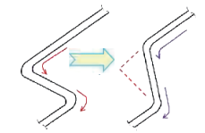 Minimize bends, and when necessary, use bends with a gentle radius (R), avoiding sharp elbows.